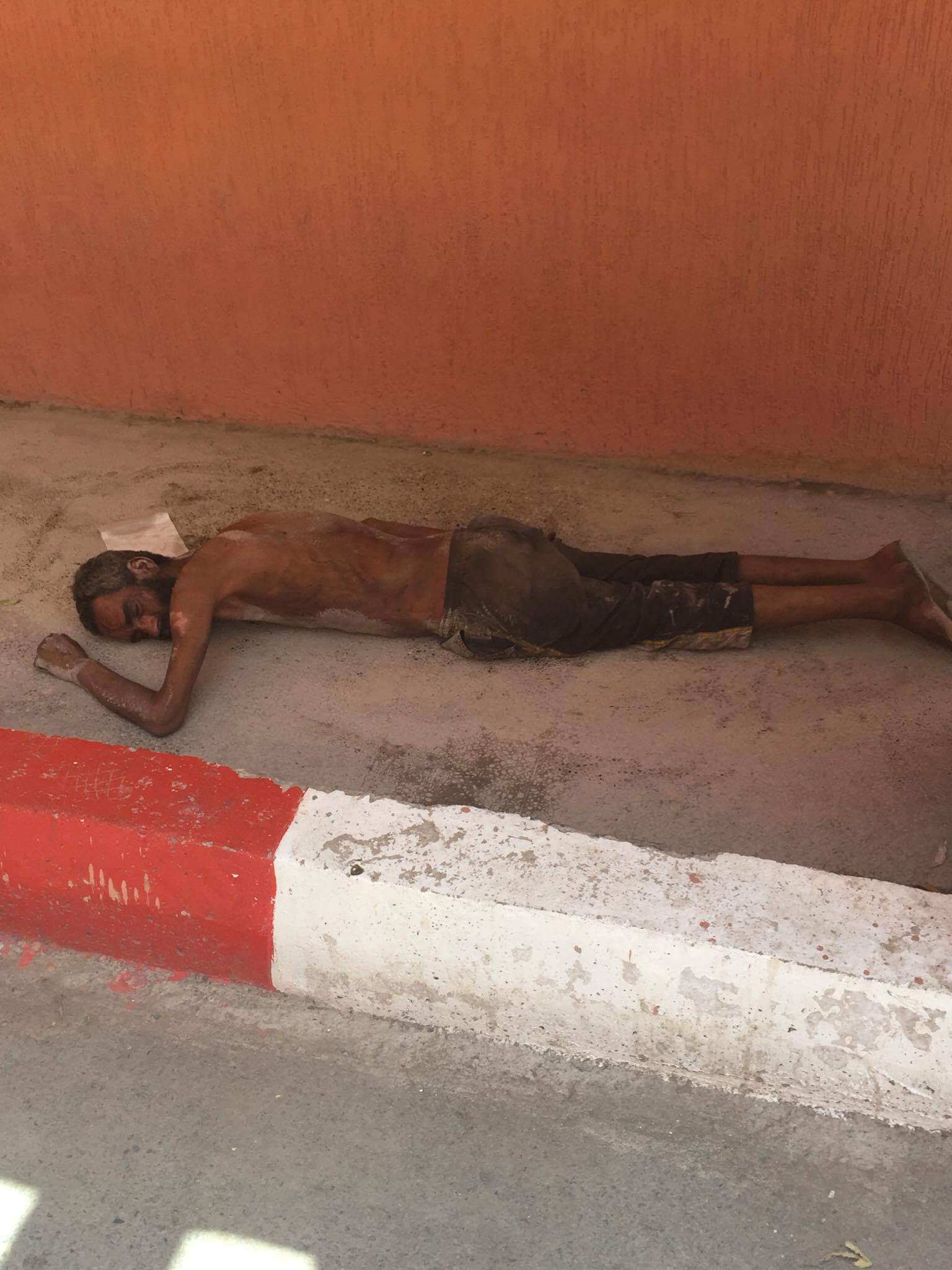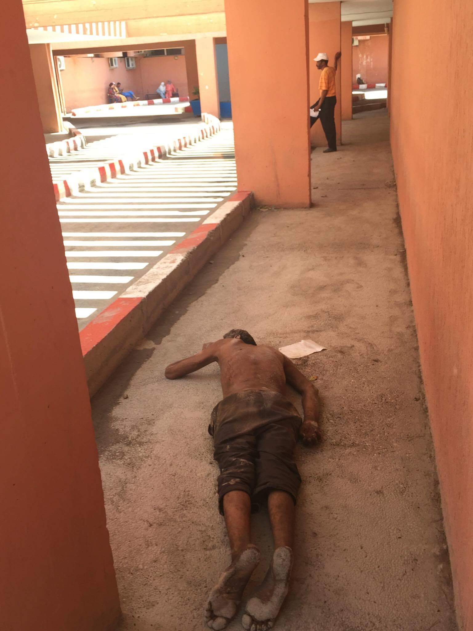 تداول نشطاء مواقع التواصل الاجتماعي صورة محزنة لمشرد مريض يفترش الأرض ويرقد عليها أمام قسم المستعجلات داخل المركز الاستشفائي الجهوي ببني ملال .