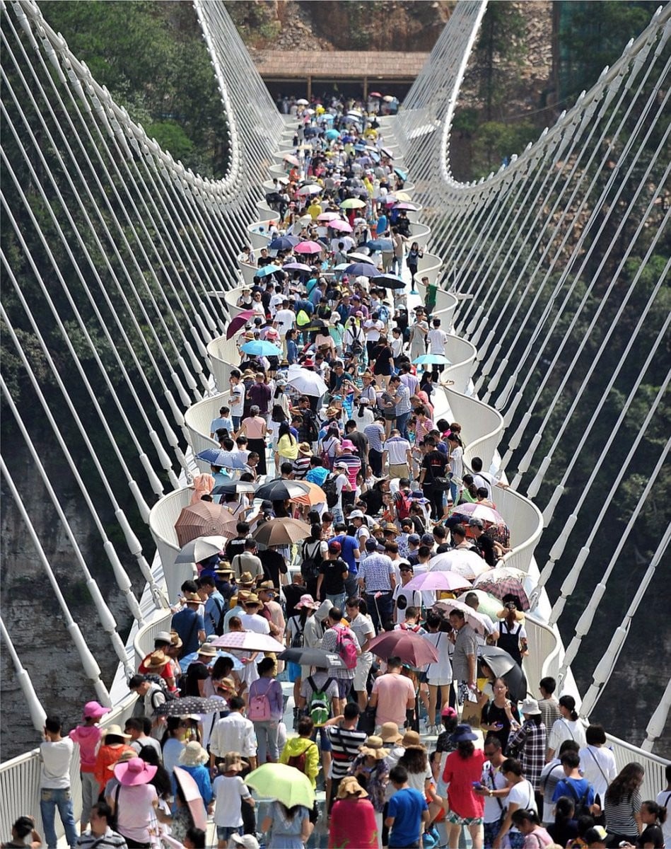 وحددت السلطات عدد زوار الجسر بـ8 آلاف يوميا، وذلك لأسباب تتعلق بسلامة الزوار، حيث يربط الجسر يربط بين ضفتي منحدرات في الحديقة الوطنية في مقاطعة هونان، ويبدو من السماء مثل فراشة بيضاء عملاقة.