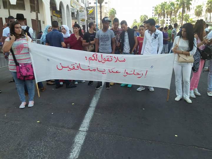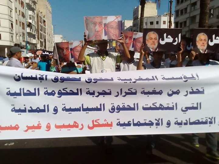 و أظهرت صور من المسيرة قيل إنها تنظم من أجل الاحتجاج على “أخونة الدولة والمجتمع” و”ضد عبد الإله بنكيران” و”ضد حزب العدالة والتنمية”.