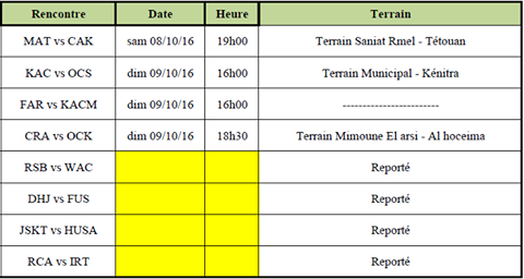 حددت العصبة الإحترافية التابعة للجامعة الملكية المغربية لكرة القدم  برنامج الدورة الرابعة من البطولة الاحترافية نهاية الاسبوع المقبل ، و الذي  شهد تأجيل 4 مباريات بسبب مشاركة لاعبي عدد من الفرق كالرجاء و الوداد و الفتح الرباطي رفقة المنتخبات الوطنية.