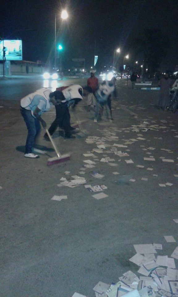 شباب الأصالة و المعاصرة باشروا أشغال كنس الشارع الرئيسي بمركز المدينة و تنظيفه من منشورات دعائية و ملصقات من التي يلقي بها المترشحون عبثا في الشارع العام .