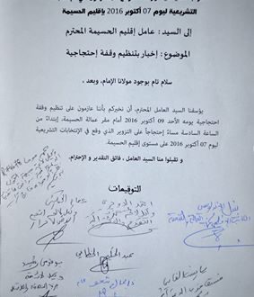 شهد مقر عمالة الحسيمة وقفة احتجاجية دعت إليها 7 أحزاب من أصل 12 حزبا شارك في استحقاقات 7 أكتوبر، و ذلك احتجاجا على التزوير الذي طال العملية، حسب مراسلة توصل بها عامل الإقليم من طرف الأحزاب.