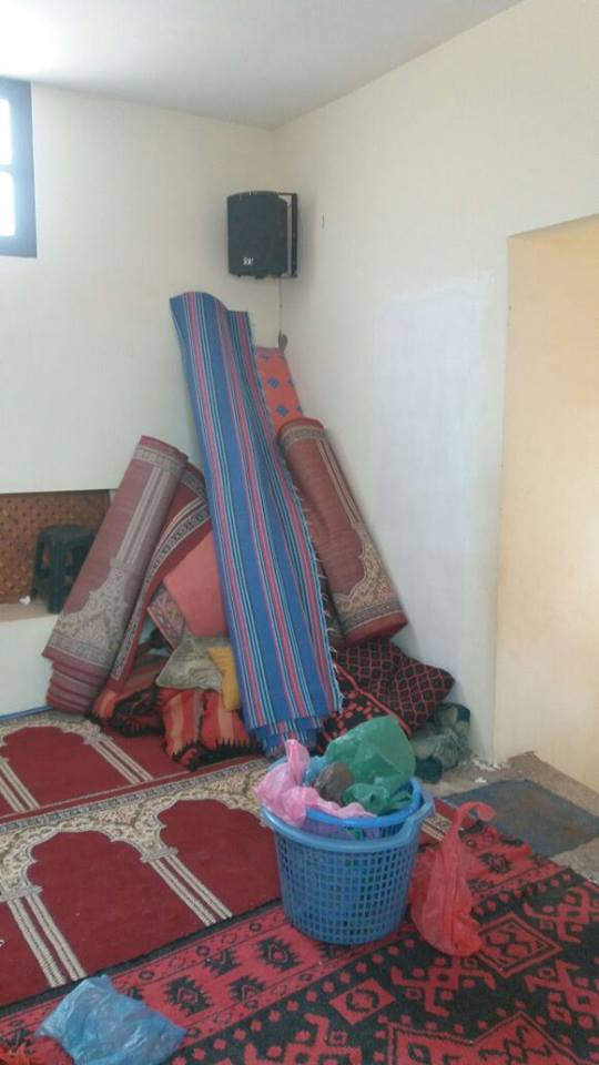 على بعد أيام قليلة من تنظيم المغرب للمؤتمر العالمي للمناخ في دورته الثانية والعشرون ومحاولات تلميع الواجهات بمدينة مراكش طلب من أستاذة بمجموعة مدارس الشريفية بجماعة تسلطانت أن تدرس المستويين الخامس والسادس عربية فرنسية بدوار اولاد مبارك بمسجد بعد إحضار التجهيزات ،علما أن متابعة وصول التجهيزات يجب أن تتم من طرف المديرية الإقليمية، وعلما كذلك أن كل مديرية مطالبة بتكليف لجن لتتبع الدخول المدرسي، وتعاني الاستاذة معاناة صعبة في هذه الوضعية غير التربوية وغير القانونية، حيث يوجد باب المكان الذي يشبه القاعة على طريق (كما هو في الصورة) مما يجعل الغرباء يطلون بشكل مستمر،