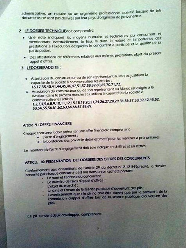 كما طرح المحتجون علامات استفهام عريضة حول الصيغة التي كتب بها الاعلان عن طلب العروض المذكور سالفا ، باللغتين العربية و الفرنسية ، حيث بدا واضحا تضمن كل واحد منهما لكلفة تقديرية مغايرة تماما عن الأخرى ، فبالنسخة العربية وضع مبلغين مختلفين في نفس الجملة ، واحد كتب بالأرقام و الثاني كتب بالحروف ، أما بالنسبة للنسخة الفرنسية ، فقد وضع نفس المبلغ المكتوب بالأرقام في النسخة العربية ، وهو ما اعتبر بحسب المحتجين تمويها واضحا ، بهدف خلق نوع من البلبلة في صفوف المتنافسين على الصفقة .