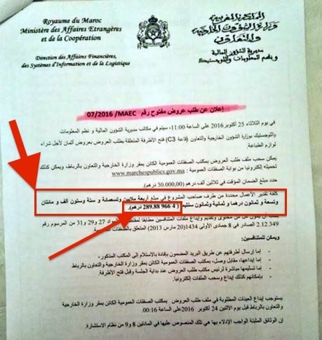 على بعد أيام قليلة من الخطاب الملكي الأخير ، بمناسبة افتتاح الولاية البرلمانية الجديدة ، و الذي أكد من خلاله جلالته على ضعف أداء الإدارة العمومية و جودة خدماتها ، و أيضا العراقيل التي يواجهها بعض المستثمرين في طريق ولوجهم للإدارة، علمنا في موقع " أخبارنا المغربية " وفق مصادر مطلعة جدا أن فضيحة مدوية اهتزت على وقعها يوم أمس الخميس، وزارة الخارجية ، إثر احتجاج أصحاب شركات على خروقات فاضحة شابت مناقصة تهم صفقة عمومية لشراء لوازم الطباعة ، و التي حدد لها صاحب المشروع ( وزارة الخارجية )، كلفة تقديرية بقيمة ( 4,966,289,88 درهم ) ، حيث تقدمت 7 شركات للمنافسة على هذه الصفقة ، لكن و قبل 10 أيام فقط من التاريخ المحدد لفتح الأظرفة ( أمس ) ، قام صاحب المشروع بوضع تعديلات فيما يخص الأجهزة المطلوبة ، حيث وضع قائمة بأسماء عينات لا توجد في المغرب ، و التي تتطلب السفر إلى الخارج من أجل اقتنائها ، في عملية وصفها أحد المحتجين بالتعجيزية ، لكن و مع ذلك تمكنت الشركات المحتجة من جلب هذه العينات وفق المعايير المتفق عليها و التوقيت المحدد ، في وقت استعصى على عشرات الشركات الدخول في هذه المنافسة بسبب ذات الاسباب التعجيزية التي وقضعت في آخر اللحظات.
