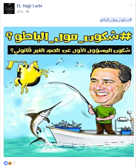 انتشر على مواقع التواصل الاجتماعي في اليومين الماضيين، هاشتاغ "شكون مول الباطو" لمطالبة السلطات بالكشف عن هوية صاحب مركب صيد الأسماك ، الذي اشترى منه محسن فكري كمية من السمك الممنوع صيده، قبل أن يموت مطحونا داخل شاحنة لنقل النفايات، بعد أن قفز داخلها إثر مصادرة السلطات لأسماكه قصد اتلافها .