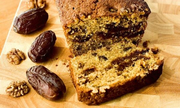 6. امزجي الطحين مع البيكنج باودر و الملح في وعاء اخر ثم أضيفي المزيج لخليط البيض والتمر مع الخفق حتى تتمازج المكونات.