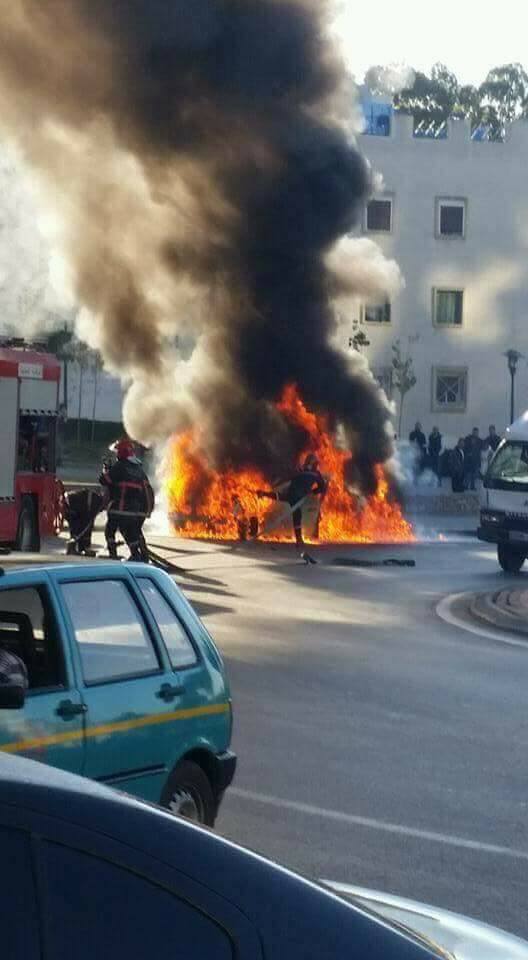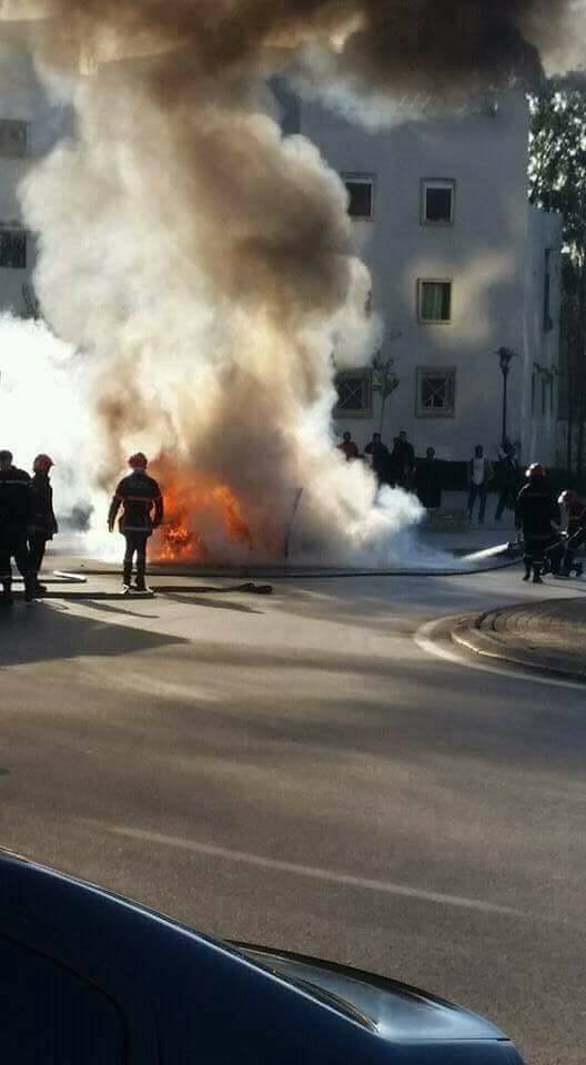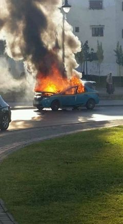 بالصور : النيران تلتهم سيارة أجرة صغيرة بطنجة امام أعين المارة