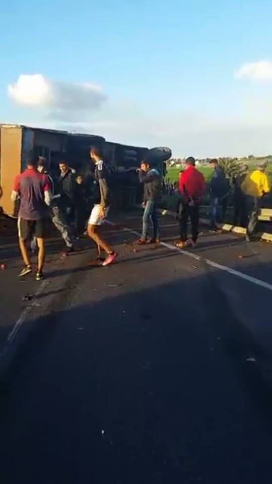 و حسب شهود عيان، فإن الحادث نجم عن اصطدام الشاحنة بسيارة خفيفة ، ما أدى إلى انقلاب السيارة و سقوطها خارج الطريق .