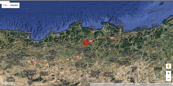وحسبما أفاد به مركز البحث في علم الفلك والفيزياء الفلكية والجيو فيزياء الجزائري، فإن مركز الهزة قد تم تحديده على بعد 1 كم شمال شرق عين بوزيان بولاية سكيكدة.