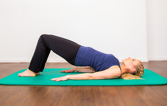 في هذا التمرين يتم الاستلقاء بالظهر على حصيرة، مع ضم الساقين ووضع الذراعين بجانب الجسم، وبعد ذلك رفع الخصر من الأرض، مع الاحتفاظ بالأرداف مرفوعة لمدة عشر ثوان.
