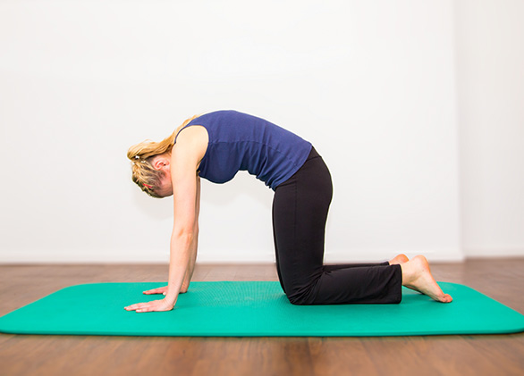 يبدأ هذا التمرين من وضع الارتكاز على الركبتين واليدين مع فرد الظهر تماماً والنظر لأسفل، وبعد ذلك يتم تقوس الظهر ببطء، إلى أن يصبح الظهر مستديراً تماماً، ثم يتم الرجوع إلى الوضع الأصلي، ويتم تكرار هذا التمرين عشر مرات.
