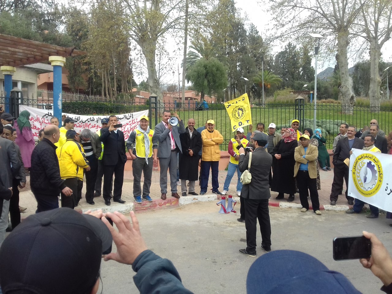 نقابة الكدش تحتج أمام ولاية جهة بني ملال خنيفرة وترفع شعارات قوية وتستحضر إعفاء بنكيران (صور)