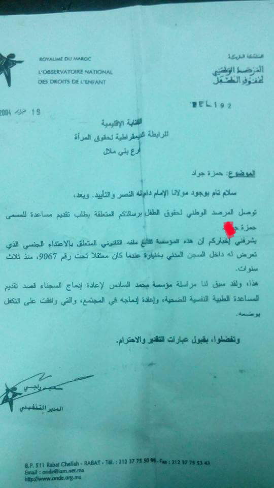 السجين الهارب وحسب وثيقة نشرها أيضا بنفس الحساب الفيسبوكي تؤكد أنه تعرض للاغتصاب بسجن خنيفرة بعدما كان طفلا لا يتجاوز عمره 15 سنة ، دون أن يؤخذ حقه.
