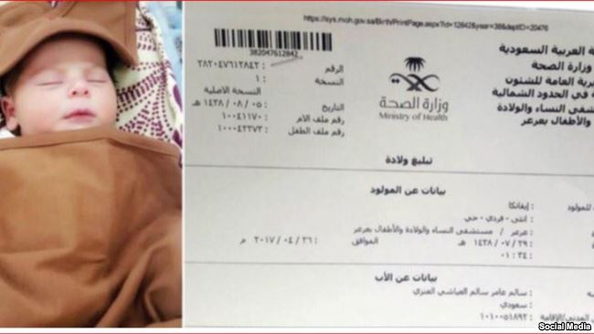 وانتشرت على نطاق واسع صورة من شهادة ميلاد إيفانكا سالم عامر سالم العياشي العنزي، وتظهر أنها مولودة في مستشفى النساء والولادة بمدينة عرعر في شمال السعودية.