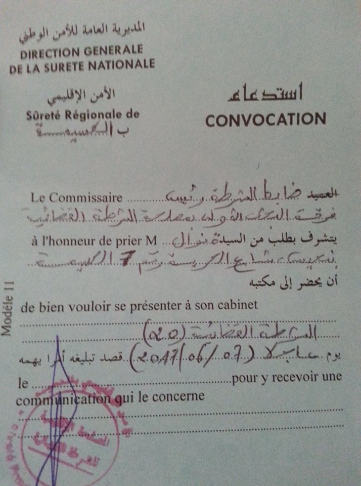 توصلت القيادية في حراك الريف نوال بنعيسى ، باستدعاء من أجل المثول امام فرقة البحث الأولي بمصلحة الشرطة القضائية بالحسيمة اليوم الاربعاء 7 يونيو الجاري.