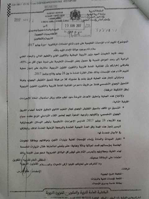 كشفت مصادر مهتمة بالشأن التعليمي عن قيام محمد حصاد وزير التريبية الوطنية بتكليف لجان تفتيشية بزيارة المؤسسات التعليمية التي حصلت على نسبة النجاح أقل من 40% في امتحانات الباكالوريا.
