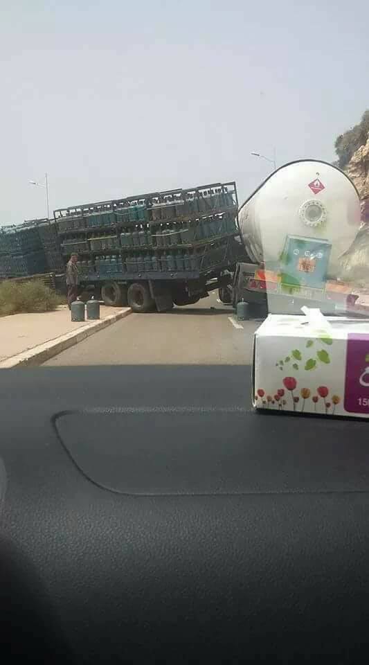 وقعت قبل قليل حادثة سير خطيرة بعد إصطدام شاحنة كبيرة محملة بقنينات غاز البوتان مع شاحنة اخرى محملة بصهريج كبير للوقود بالقرب من ميناء أكادير على مستوى الطريق الرابطة بين مدينة أكادير ومنطقة تغازوت السياحية .