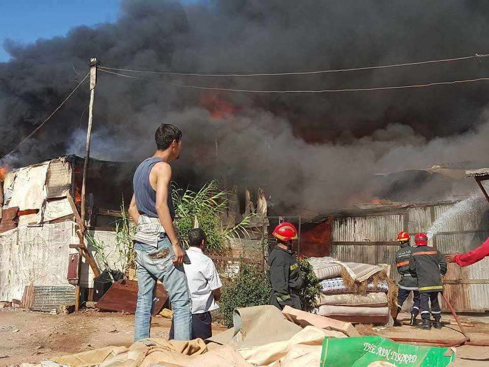 اندلع اليوم الخميس حريق مهول بسوق الصالحين لبيع الخشب والافرشة المنزلية (الاسفنج) والمتلاشيات (المعروف بسوق الكلب ) بحي كريمة بسلا دون ان يخلف خسائر في الارواح .
