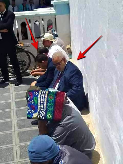 تناقلت صفحات بالفيسبوك ، صورة مثيرة لعبد الاله بنكيران ، الأمين العام لحزب العدالة والتنمية ، و هو جالس على " العتبة " عند مدخل مسجد بالعرائش ، إبان حضوره أمس الجمعة مراسم دفن والد عبد الله البقالي مدير جريدة العلم ، لسان حزب الاستقلال.