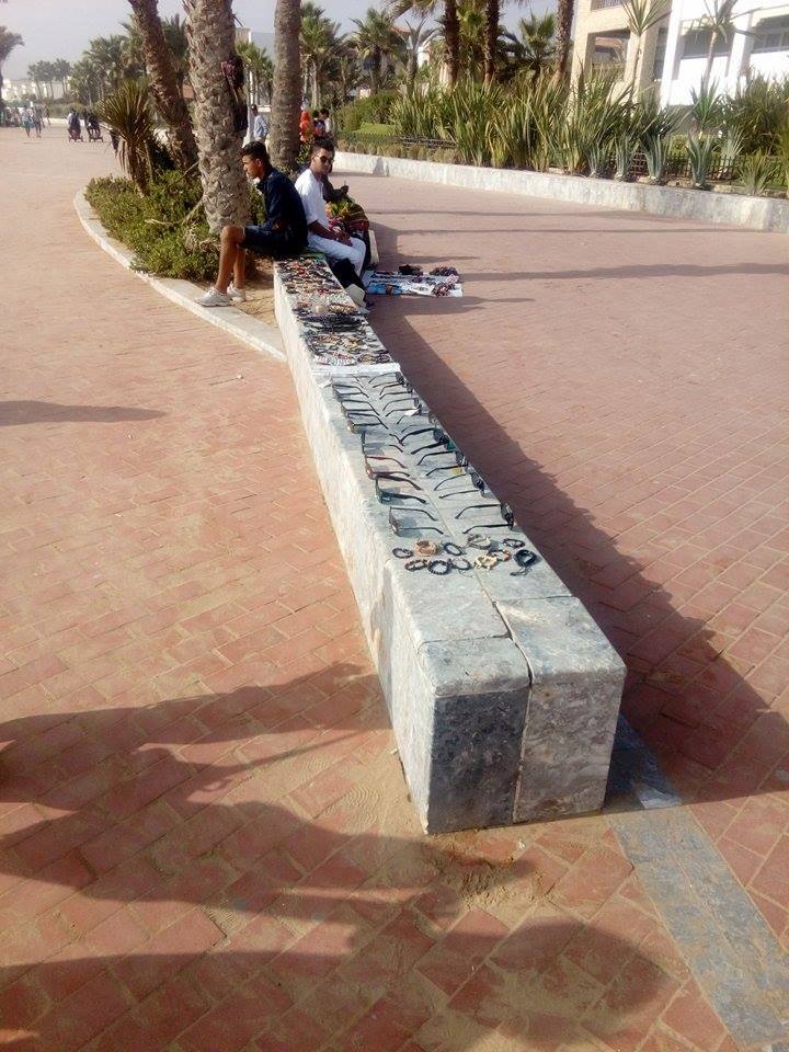 يعيش الشريط الساحلي لمدينة أكادير وخاصة "الكورنيش" حالة من الفوضى العارمة والتسيب نتيجة إجتياحه من طرف العديد من المتسكعين والمتسولين والباعة المتجولين الذين جعلوا منه سوقا عشوائيا لعرض بضائعهم أمام الزائرين.