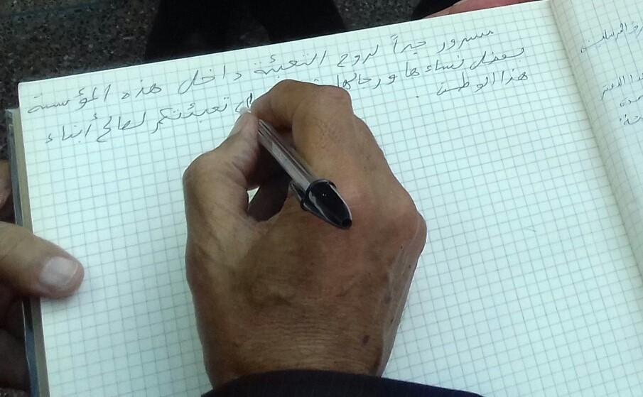 خلال زيارة محمد حصاد وزير التربية الوطنية والتكوين المهني والتعليم العالي والبحث العلمي ، أول أمس إلى جهة بني ملال خنيفرة ، طلبت منه إحدى الأستاذات التوقيع في دفتر مدرسة واد المخازن ببني ملال ، وكتب بخط يده الجميل كلمات تشجيعية للمؤسسة ولنساءها ورجالها ولجميع أطرها -الصورة-.