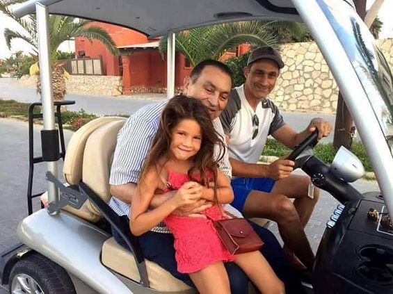 ويظهر مبارك في الصورة مبتسماً وبصحة جيدة، محتضناً حفيدته، وجلس إلى جوار نجله الذي تولى قيادة سيارة الغولف، فيما أفاد مستخدمون بأن هذه الصورة التقطت في منتجع "هاسيندا" السياحي شمالي البلاد.