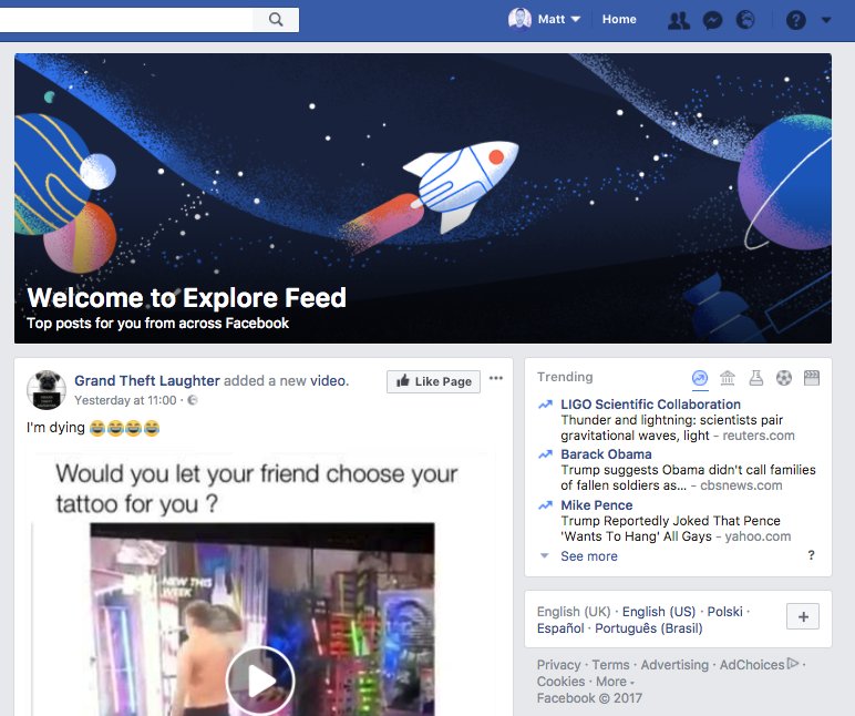 وأكد ممثل شركة فيسبوك صحة معلومات ظهور الميزة الجديدة، قائلا: "نبدأ في تقديم شريط إضافي مخصص للمنشورات المشهورة، بما فيها الفيديو والصور، التي تتناسب مع كل مستخدم وتعتمد على المحتوى الذي يفضله المستخدم. وهذا طلب مستخدمي الشبكة وهناك رغبة من مستخدمينا في طريقة سهلة لاستكشاف المحتوى من صفحات أخرى غير مشتركين بها". والخاصية الجديدة متوفرة تحت اسم "Explore"، بمعنى استكشاف.