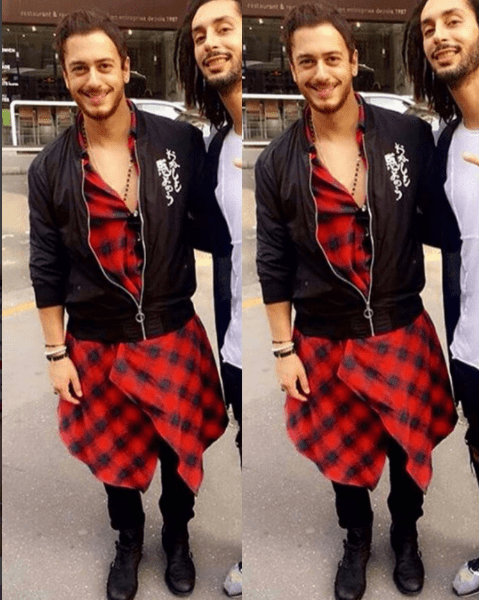 ظهر النجم المغربي سعد لمجرد بإطلالة غريبة الشكل أثناء التقاطه صورًا تذكارية مع أحد أصدقائه، مرتديا جاكيت أسود فوق قميص أحمر طويل.