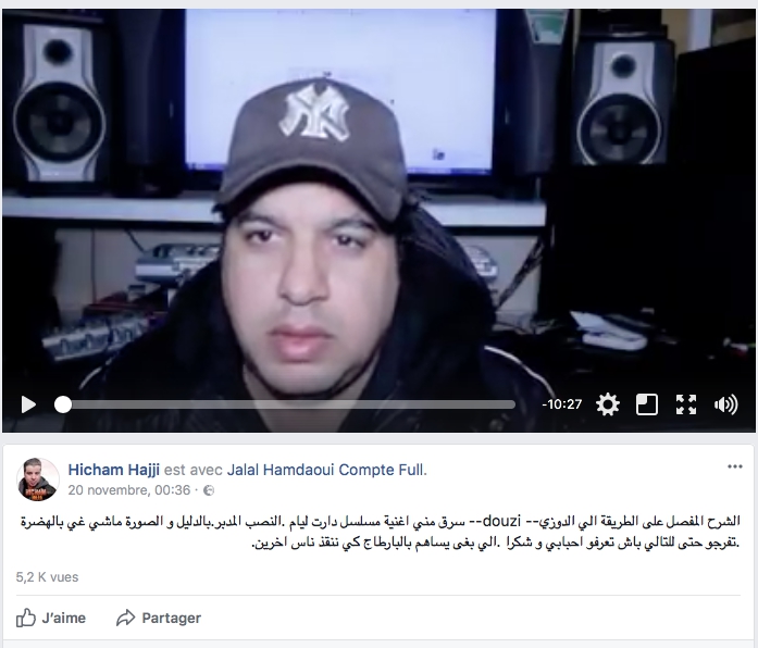 نشر الفنان المغربي هشام حجي شريط فيديو عبر حسابه الخاص عبر الفيسبوك،اتهم من خلاله الفنان الشاب الدوزي بسرقة أغنيته، حيث أرفق الفيديو بتدوينة قال فيها : " الشرح المفصل على الطريقة الي الدوزي-- douzi-- سرق مني اغنية مسلسل دارت ليام ، النصب المدبر ، بالدليل والصورة ماشي غي بالهضرة ، تفرجو حتى للتالي باش تعرفو احبابي و شكرا ، الي بغى يساهم بالبارطاج كي ننقذ ناس اخرين ".