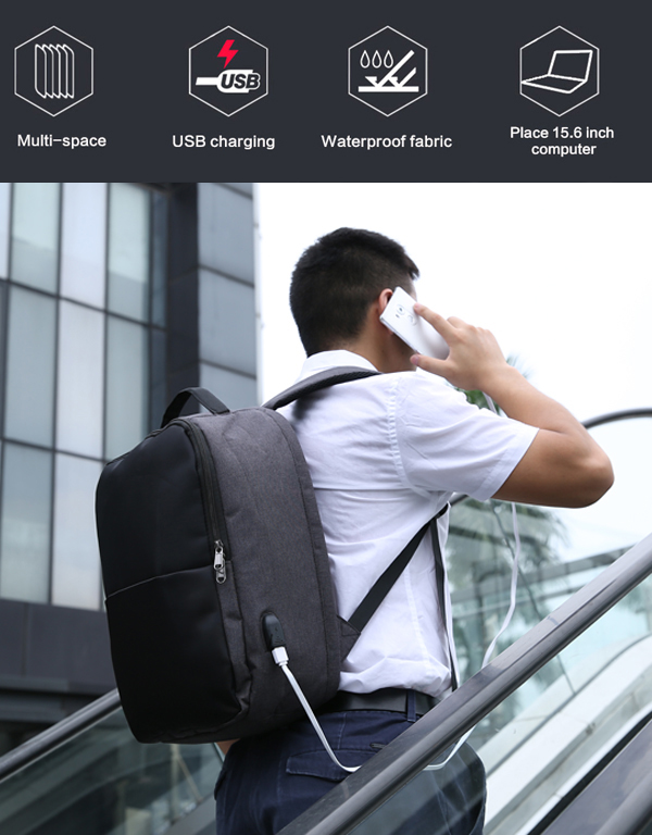 حقيبة Ekphero متوفرة في عدة ألوان (رمادي، أسود، أزرق) ، تتميز بمقاومتها للماء و توفرها على مكان للشحن حيث يوجد بها منفذ USB يوفر شحن مريح للأجهزة الإلكترونية .