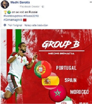 سارع عميد المنتخب المغربي وصخرة دفاع "المهدي بنعطية" إلى التعليق على نتائج القرعة التي أوقعت المغرب في مجموعة أقل ما يقال عنها أنها نارية، حيث خرج بتدوينة على صفحته الفايسبوكية.