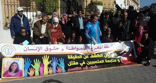 بالتزامن مع انعقاد جلسة اليوم ، نظمت جمعيتان حقوقيتان وقفة احتجاجية أمام قصر العدالة ، الهيئة المغربية لحقوق الإنسان والرابطة المغربية لحقوق الإنسان ، شارك فيها ذوي الضحية المرحومة آمال أبو القاسم للمطالبة بتوفير شروط المحاكمة العادلة وإنصاف ذوي الحقوق حيث عزى المحتجون سبب تنظيمهم لهذه الوقفة إلى ما وصفوها بمحاولات التأثير على سير المحاكمة لإفلات الطبيب من العقاب .