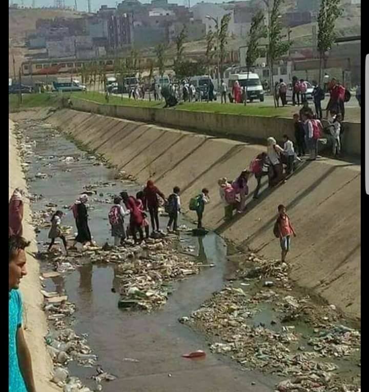 تناقلت عدد من صفحات موقع التواصل الإجتماعي "فايسبوك" ، اليوم الأربعاء، صورة تظهر تلاميذ صغار وأمهات يقطعون على شكل سلسلة وسط نفق لرمي النفايات (مجرى واد الحار).