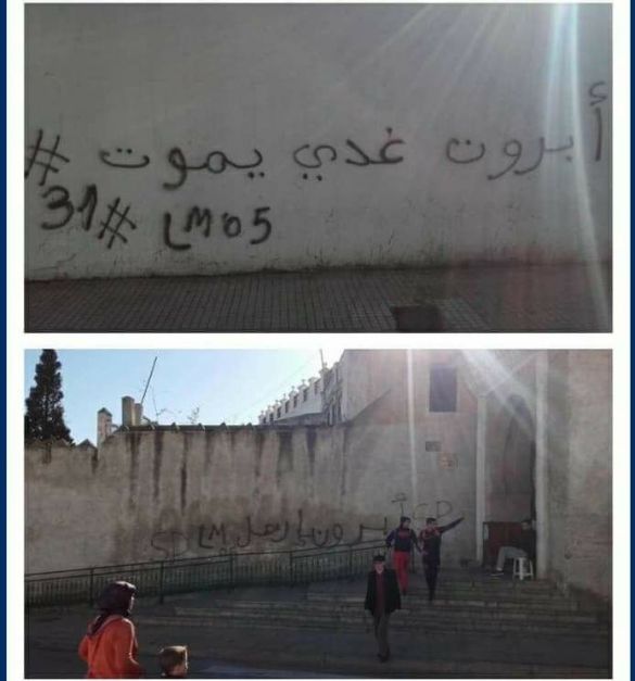 و نشرت صفحات موقع التواصل "فايسبوك" صورا من كتابات حائطية ببعض شوارع تطوان ، توجه تهديدات صريحة لأبرون بـ "القتل" ، محملة اياه مسؤولية الوضعية المزرية التي يعيشها الفريق حاليا.
