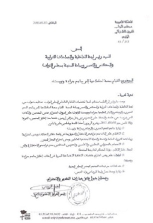 وطالب رئيس الفريق الاشتراكي، في هذه المراسلة، بتكليف نواب من لجنة الداخلية للقيام بمهمة استطلاعية إلى مناجم الفحم الحجري والرصاص والآبار التقليدية بجرادة وتويست “للوقوف على ظروف استخراج هذين المعدنين وللآفات التي تترتب عن ذلك والمتمثلة على الخصوص في مقتل حوالي أربعين شخصا منذ إغلاق المنجمين…”. وهذا نص مراسلة الفريق الاشتراكي: