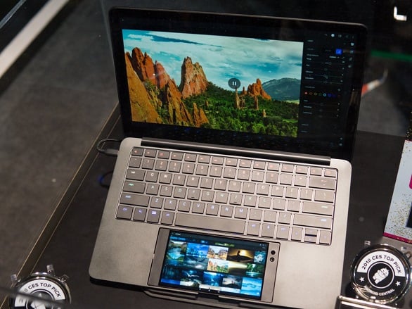 عرضت شركة ريرز مفهوماً مبتكراً لكمبيوتر المستقبل الذي يدمج الهاتف واللاب توب معاً في جهاز واحد، من خلال قاعدة إرساء تحول هاتف ريرز إلى لاب توب بشاشة عرض قياس 13.3 بوصة ولوحة مفاتيح، بالإضافة إلى شحن الهاتف أثناء استخدامه.