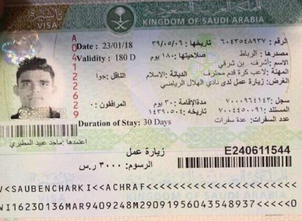 التأشيرة مدتها 30 يوما، بغرض دخول البلاد وإنهاء الإجراءات المتبقية على إتمام الصفقة بشكل النهائي، واجتياز الفحص الطبي، قبل الإعلان عن مدة التعاقد التي ستكون لموسمين ونصف.