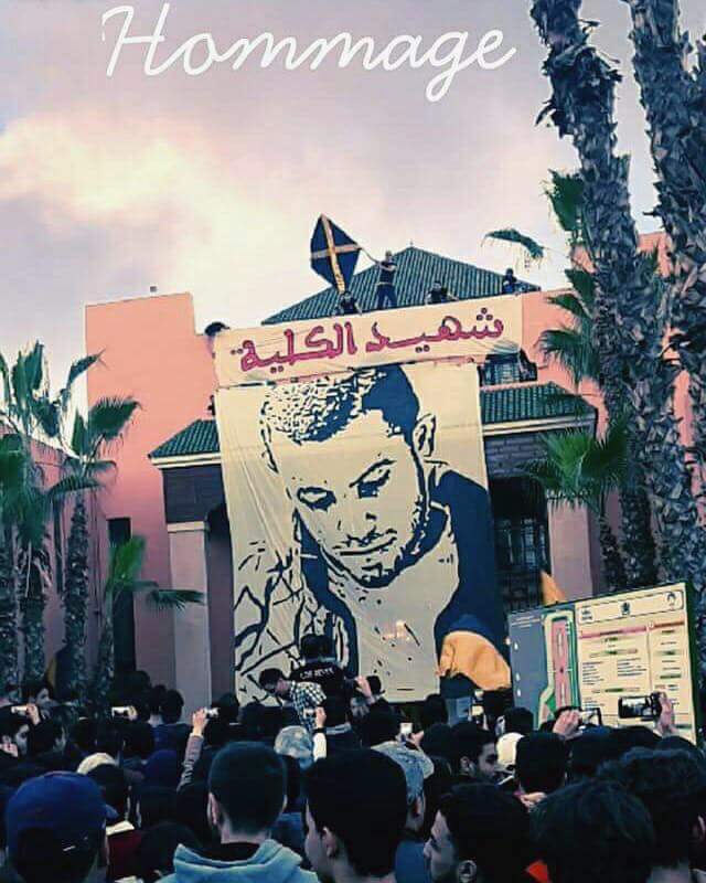 قام مجموعة من طلبة كلية الطب و الصيدلة بمراكش يوم الخميس، برسم صورة للفقيد حمزة الشايب ابن مدينة بني ملال  و قراءة الفاتحة على روحه والوقوف دقيقة صمت حزنا على وفاته على يد قتلة مجرمين.