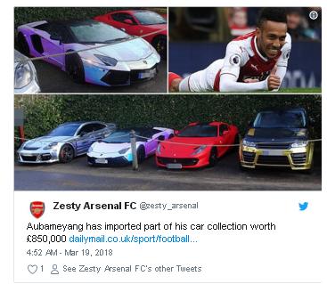 وبحسب نفس المصدر، يملك أوباميانغ (28 عاما) مجموعة أخرى من السيارات في ألمانيا لم يجلبها بعد، إذ اشتراها خلال فترة لعبه بقميص بروسيا دورتموند، وأردف أن قيمة هذه السيارات المالية تبلغ حوالي 2 مليون جنيه استرليني.