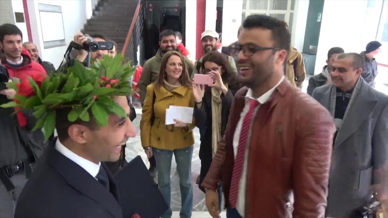 و تصدرت صور هذا المغربي الشاب كبريات الصحف الإيطالية من قبيل "لاستامبا" و "لابريس" لكونه أصبح أيقونة نجاح فريد ونموذجا للعصامية والعزيمة على التفوق في ديار المهجر. كما نشرت صورا و فيديو هات على مواقعها الإلكترونية لحفل مناقشة أطروحته بحضور والدته، وأفراد عائلته الذين قدموا من المغرب خصيصا لتقاسموا معه "أجمل لحظات حياته".