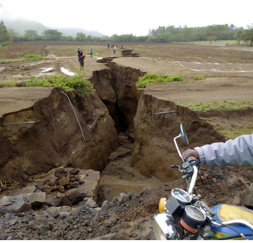 ظهر شرخ أرضي، يبلغ طوله 20 مترا، في منطقة غرب العاصمة الكينية، نيروبي، الإثنين 2 نيسان/أبريل الجاري، ما قد يكشف عن كارثة كبرى تهدد قارة أفريقيا.