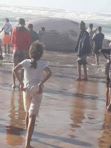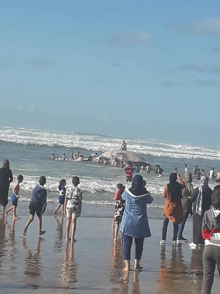 حوت كبير يفاجئ المواطنين بشاطئ زناتة بالبيضاء (صور)
