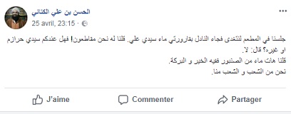 وهذا النص الكامل لتدوينة الشيخ "الحسن بن علي الكتاني":