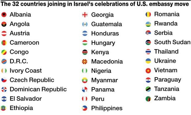 32 دولة تحضر مراسم افتتاح السفارة الأمريكية في القدس (اللائحة)