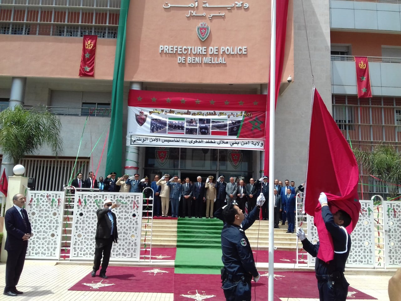 خلدت أسرة الأمن الوطني بولاية أمن بني ملال، اليوم الأربعاء 16 ماي، بنادي الفروسية ببني ملال، الذكرى 62 لتأسيس المديرية العامة للأمن الوطني، في حفل متميز ترأسه السيد والي جهة بني ملال خنيفرة وعامل صاحب الجلالة على إقليم بني ملال بحضور رؤساء وممثلو المصالح العسكرية والقضائية و الإدارية ومنتخبو وممثلو الهيئات السياسية والنقابية وفعاليات المجتمع المدني وممثلو وسائل الإعلام بالإضافة لأطر وموظفي ومتقاعدي وأيتام وأرامل رجال الأمن الوطني ببني ملال.