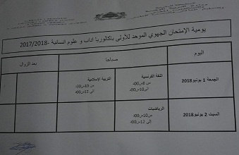 تفاجأ تلميذ يتابع دراسته بالأولى باكالوريا اداب وعلوم انسانية بكونه محروما من إتمام الامتحان الجهوي في مادة الرياضيات، بسبب خطأ فادح في نشر التوقيت لهذه المادة بثانوية اولاد ادريس الفقيه بن صالح ، حيث أن التوقيت الصحيح هو من الثامنة صباحا إلى التاسعة و النصف بدل 10 الى 12 زوالا .