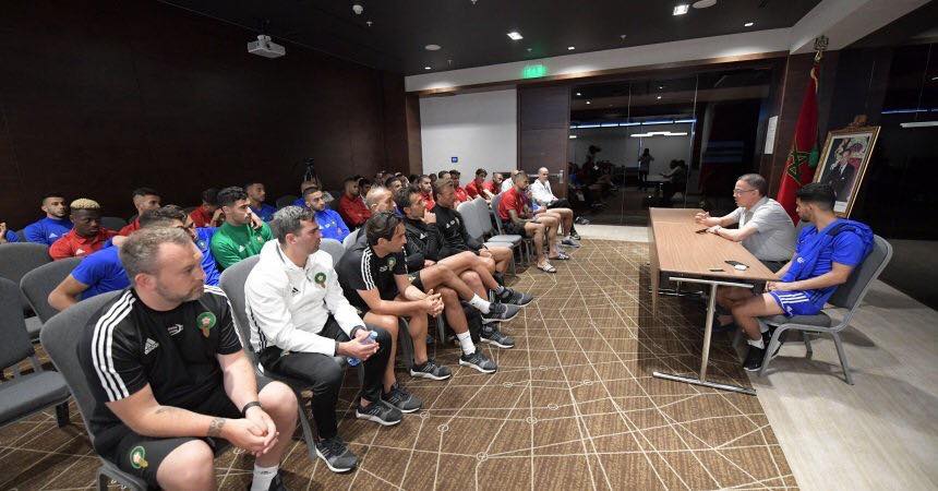 قدم السيد فوزي لقجع، رئيس الجامعة الملكية المغربية لكرة القدم، اليوم السبت، بمقر إقامة المنتخب الوطني بفورونيج (جنوب شرق موسكو)، ،دعمه لأسود الأطلس، وحثهم على ضرورة الحفاظ على روح المجموعة.