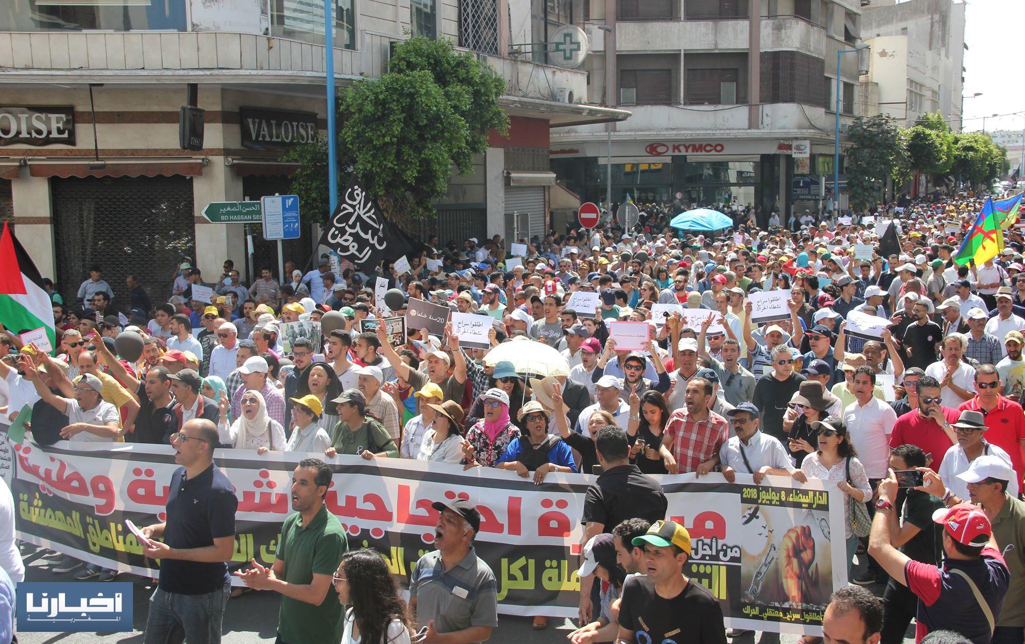 بالصور: مسيرة احتجاجية حاشدة بالدار البيضاء لاطلاق سراح نشطاء "حراك الريف"