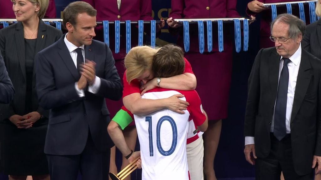 أجهشت رئيسة كرواتيا "كوليندا غرابار كيتاروفيتش" بالبكاء أثناء معانقتها للنجم الكرواتي "لوكا مودريتش" بعد تسليمه جائزة أفضل لاعب في المونديال".